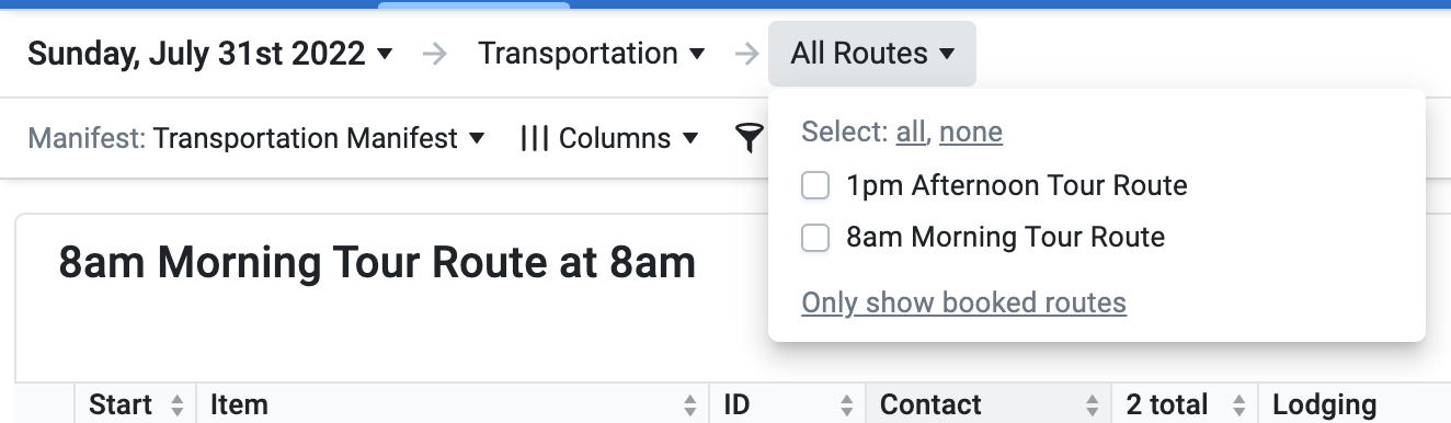 Using the manifest to view pickup routes